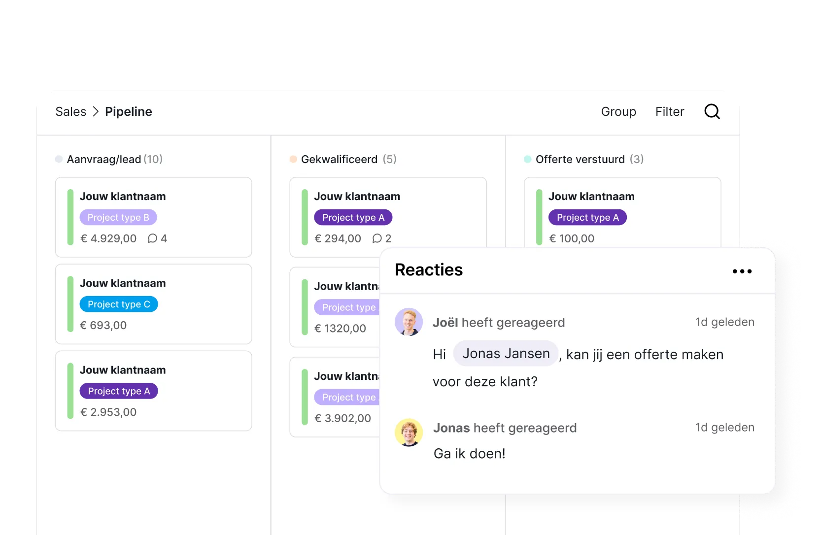Met onze offertemodule maak je eenvoudig offertes met sjablonen en voeg je moeiteloos prijsregels, opties en kortingen toe. Offertes zet je daarna met één klik om naar een order of factuur. Hoe jouw offerte workflow er ook uitziet, wij automatiseren het.
